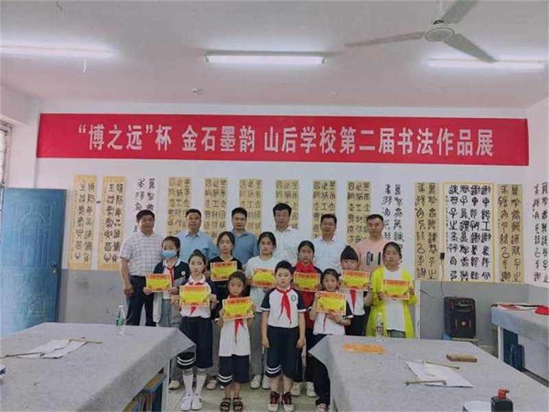 2、2022年5月25日上午,“博之遠”杯山后學(xué)校第二屆書法作品展。出席的領(lǐng)導(dǎo)嘉賓有市書協(xié)副主席趙先鋒,淮北博之遠裝飾工程有限公司總經(jīng)理趙亞,淮北職業(yè)技術(shù)學(xué)院人文社科系趙冬、劉輝教授,趙集中心校校長趙義等。